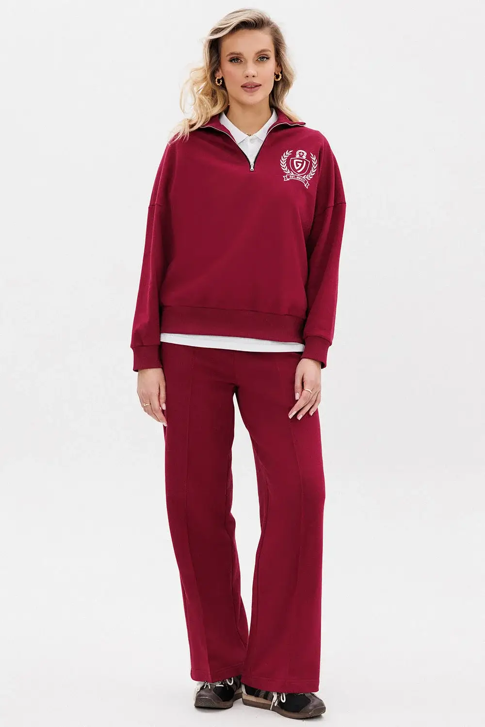 Джемпер с контрастной вышивкой и брюки со стрелками