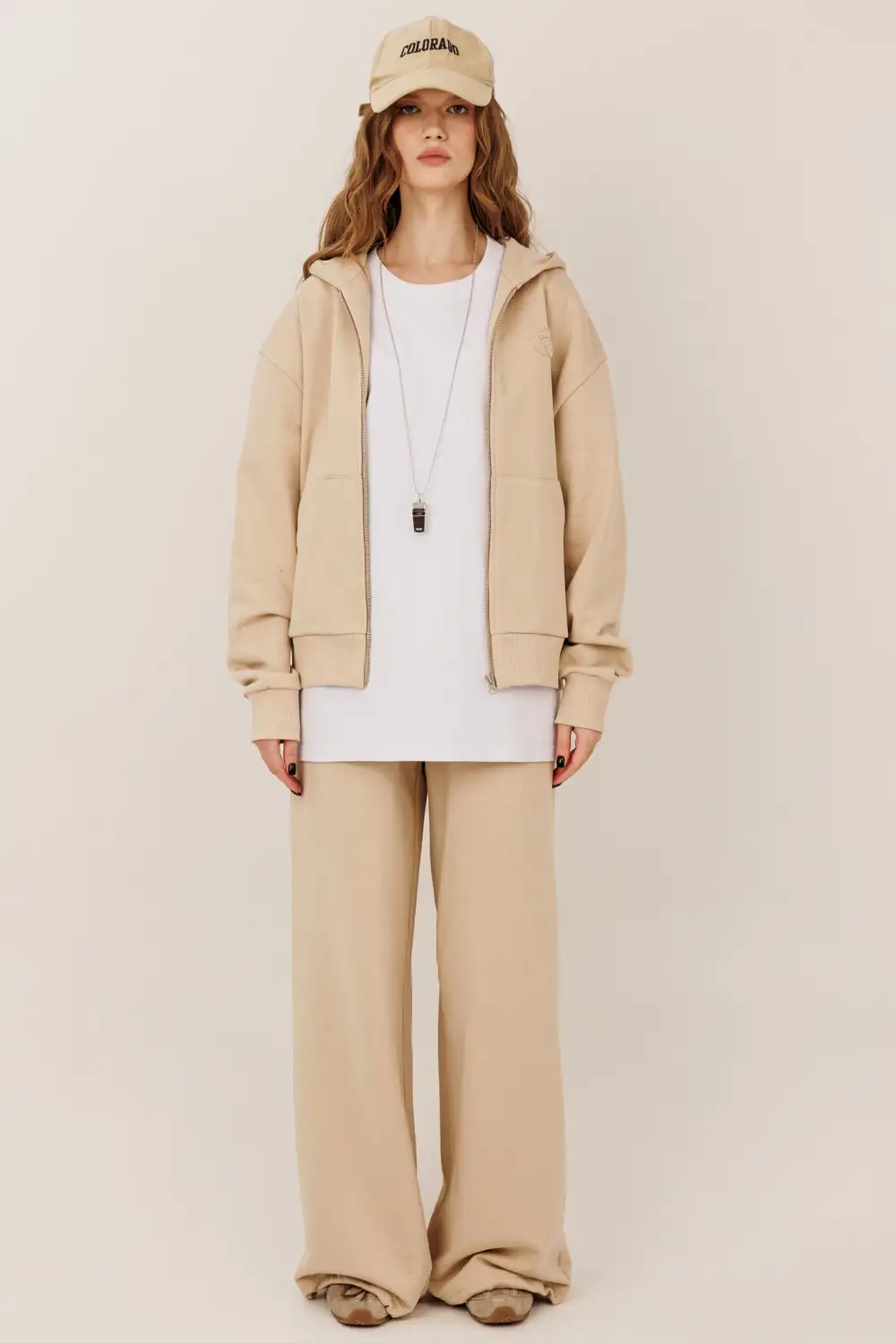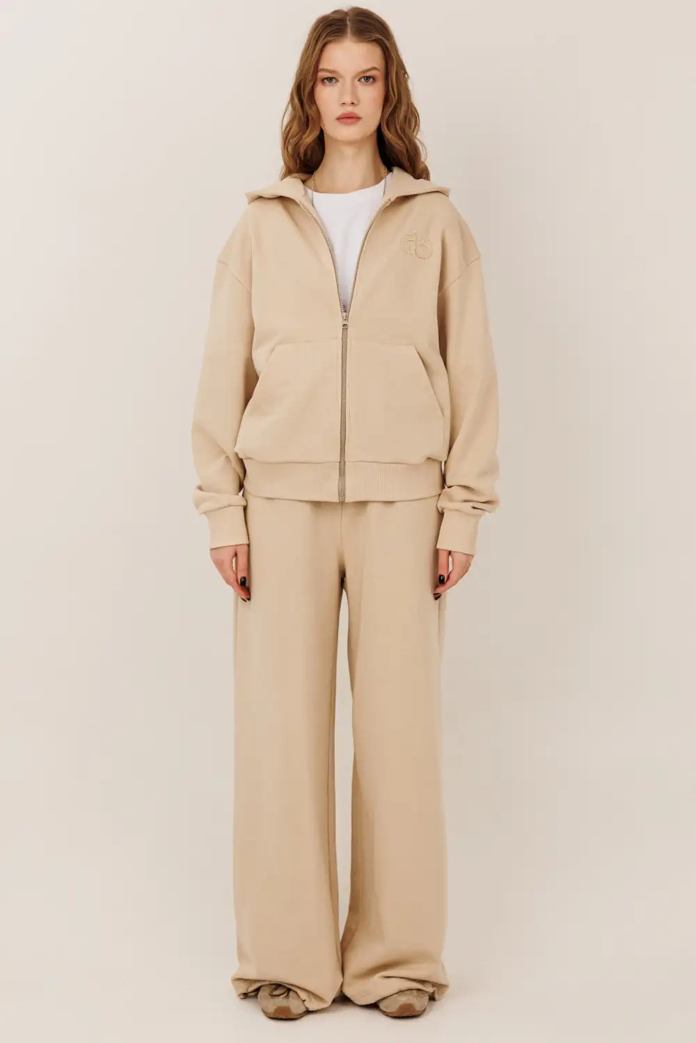 Велюровый костюм с зип худи и брюками на регулируемой резинке по низу