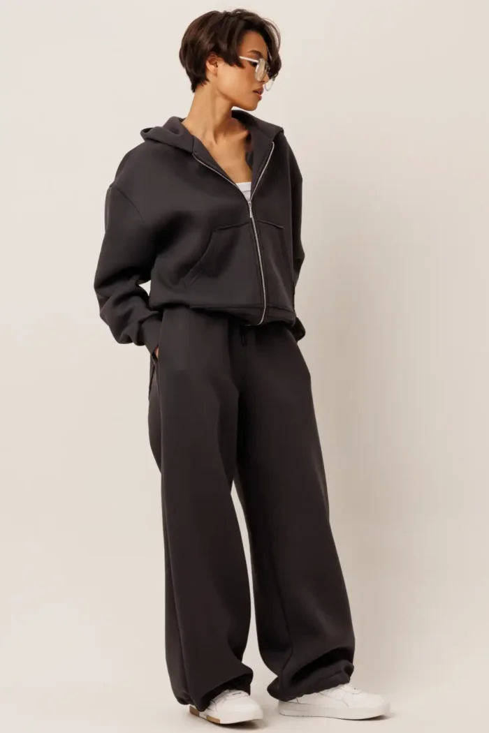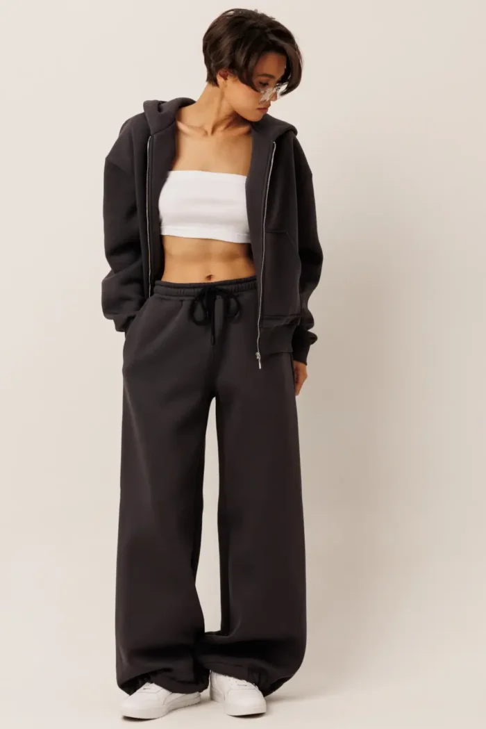 Худи на молнии вместе с широкими брюками — лучшее решение для Вас! Утепляйся вместе с нами!