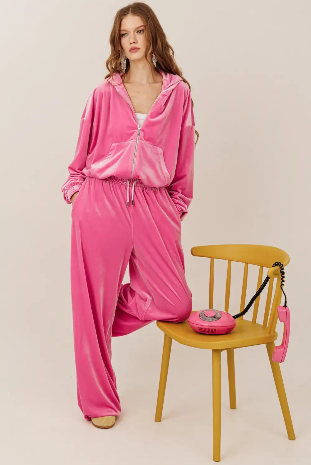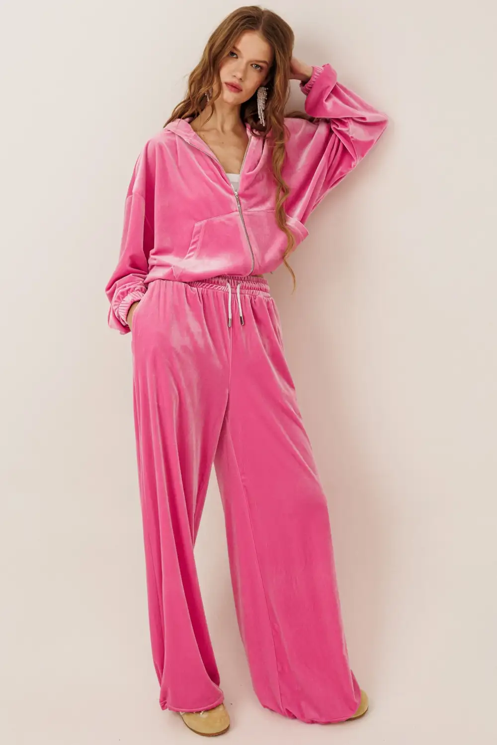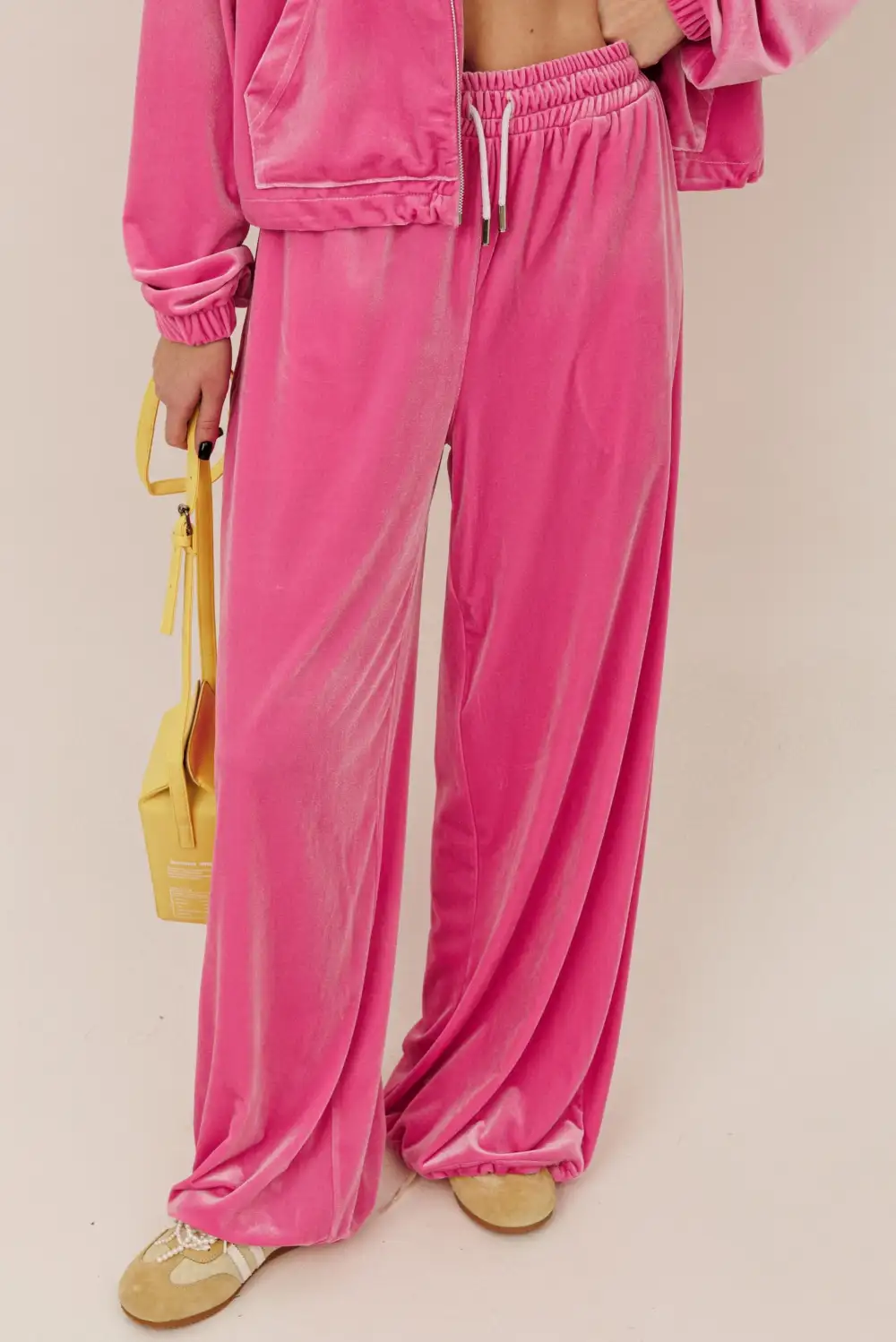 Велюровый костюм с зип худи и брюками на регулируемой резинке по низу