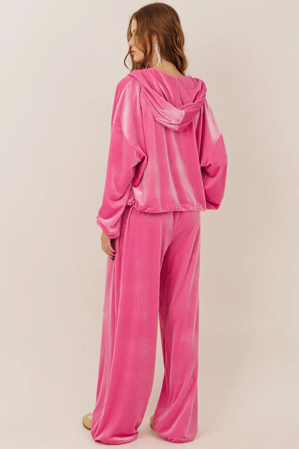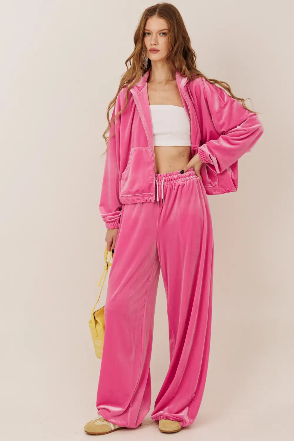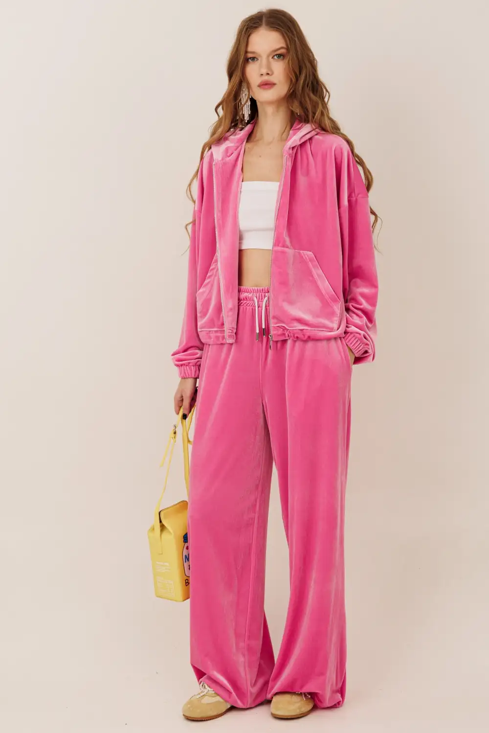 Велюровый костюм с зип худи и брюками на регулируемой резинке по низу