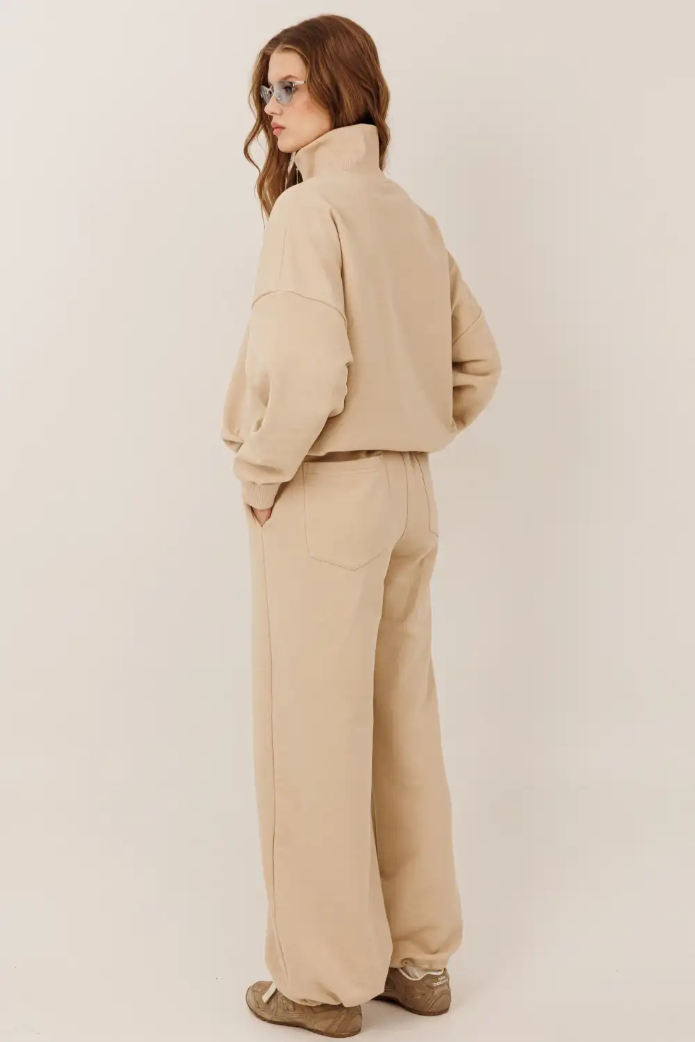 Спортивный костюм с халф-зип свитшотом и брюками с кулиской по низу