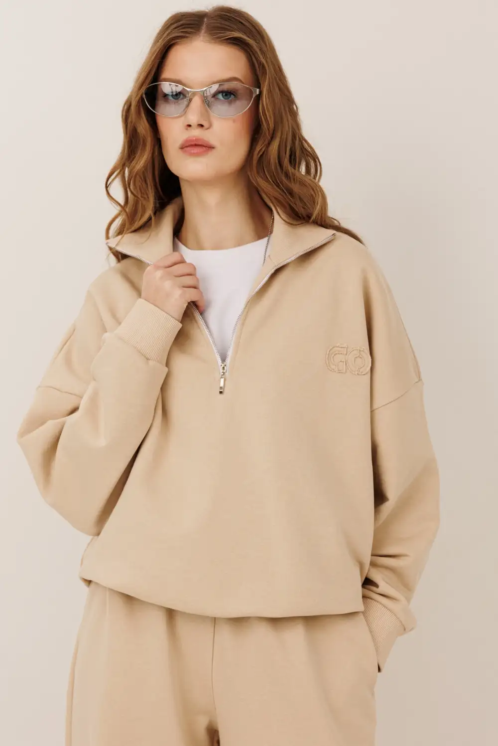 - дизайнерская вышивка “GO” зип-топа
