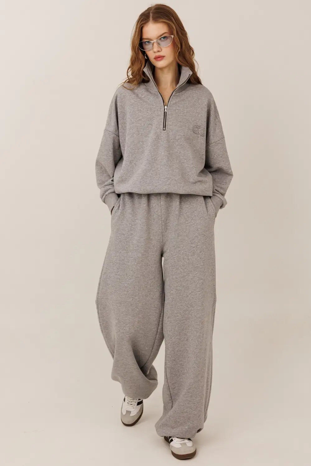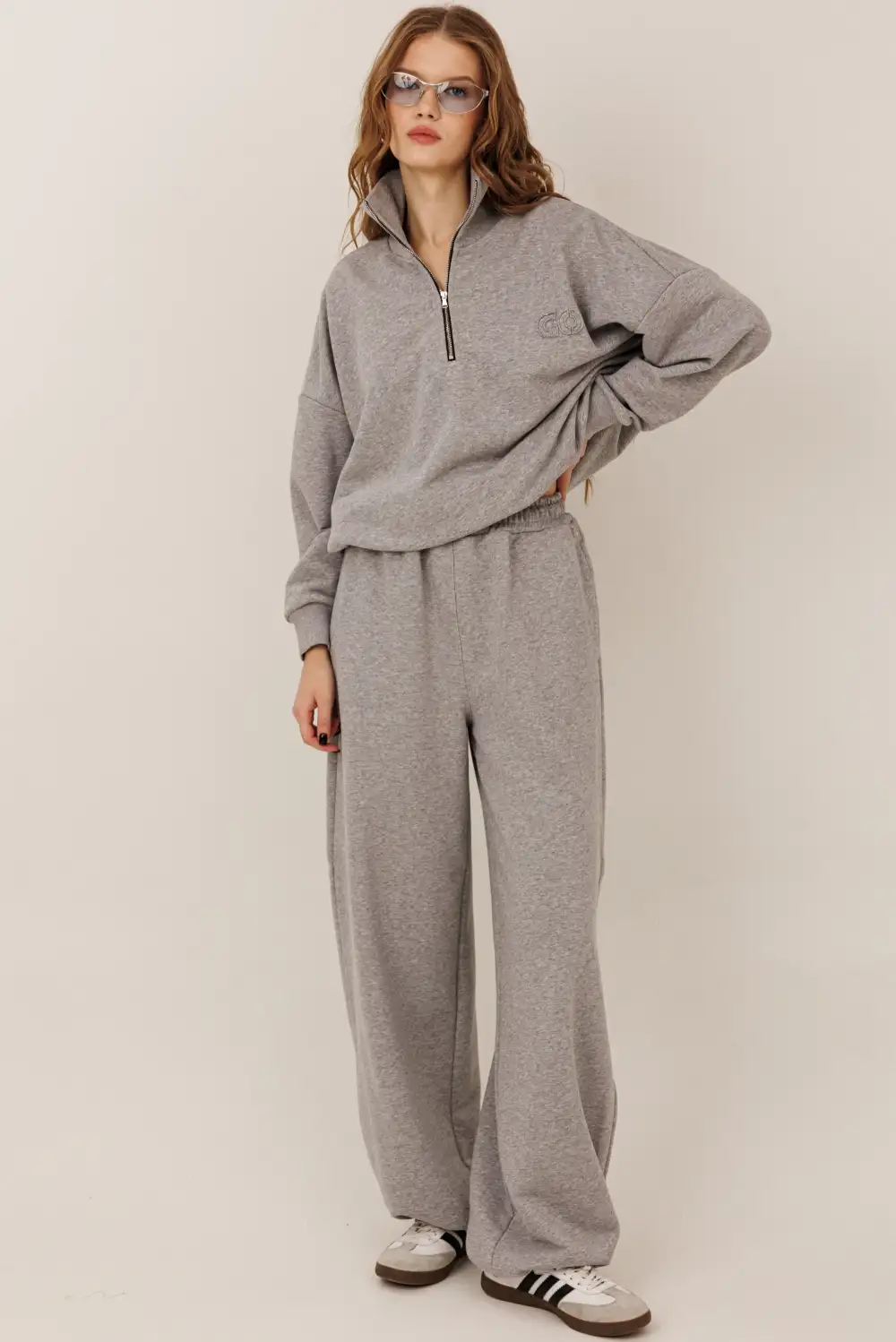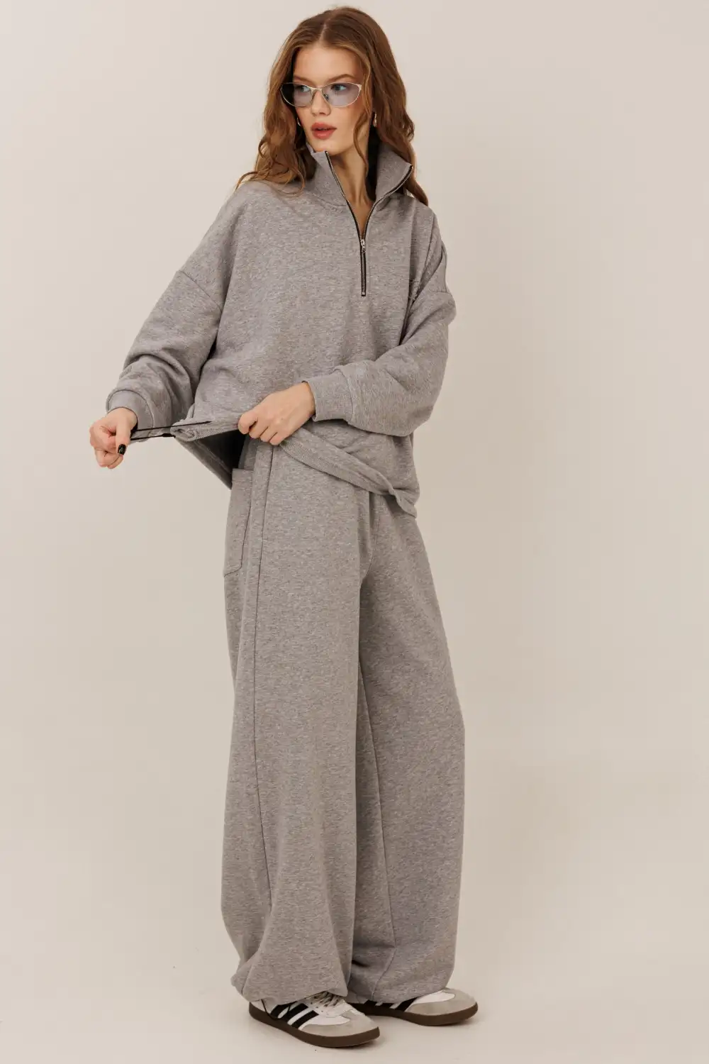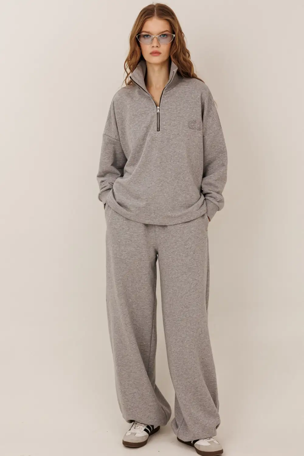 Спортивный костюм с халф-зип свитшотом и брюками с кулиской по низу