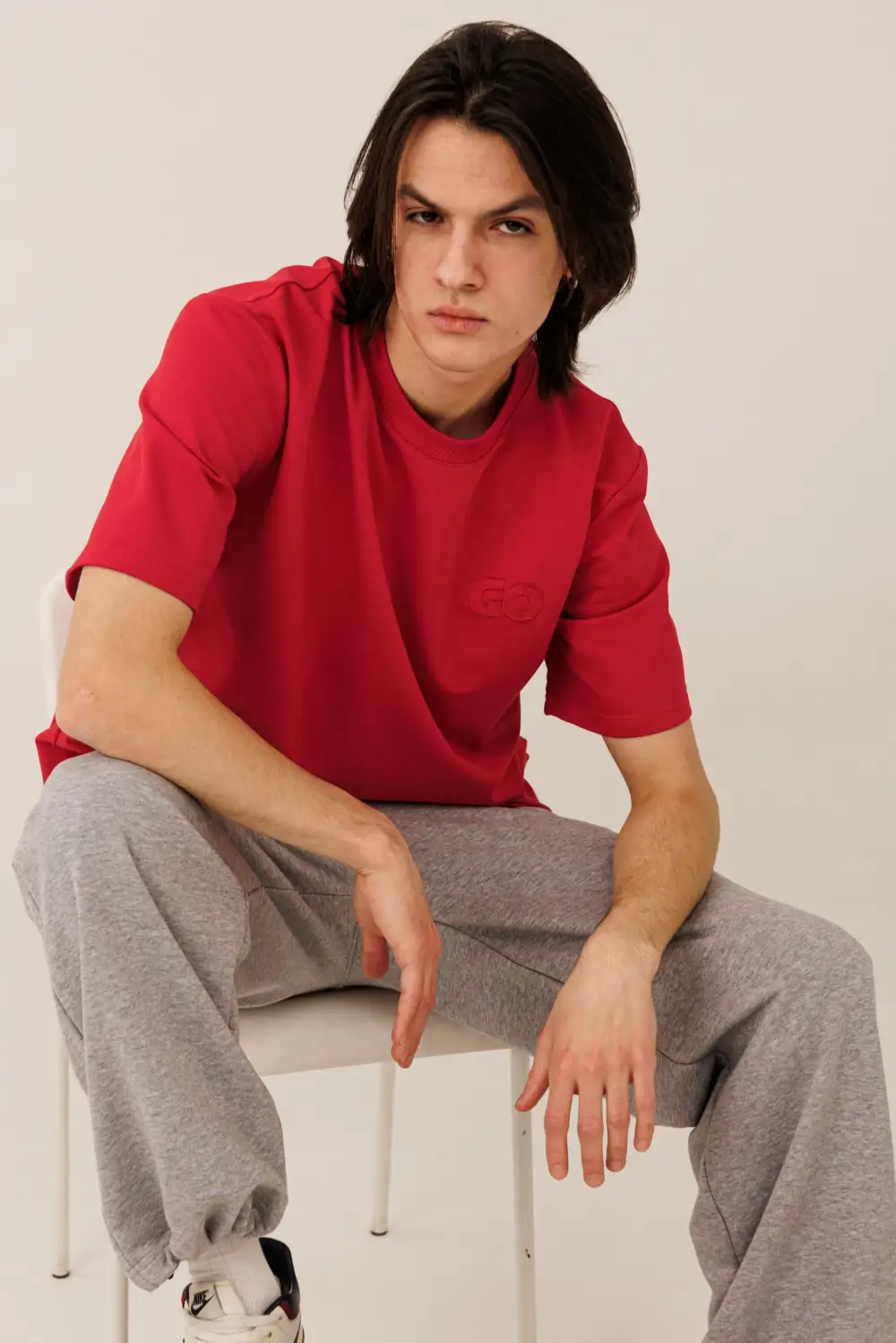 Мужская оверсайз футболка с фактурной вышивкой