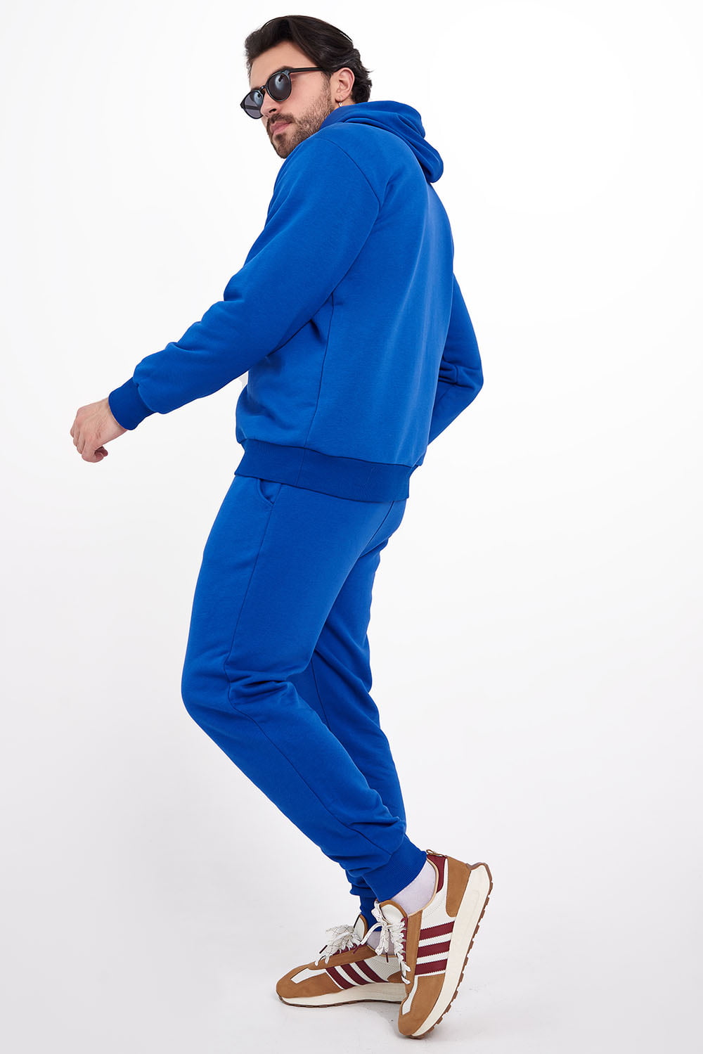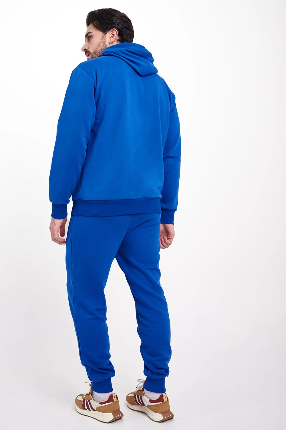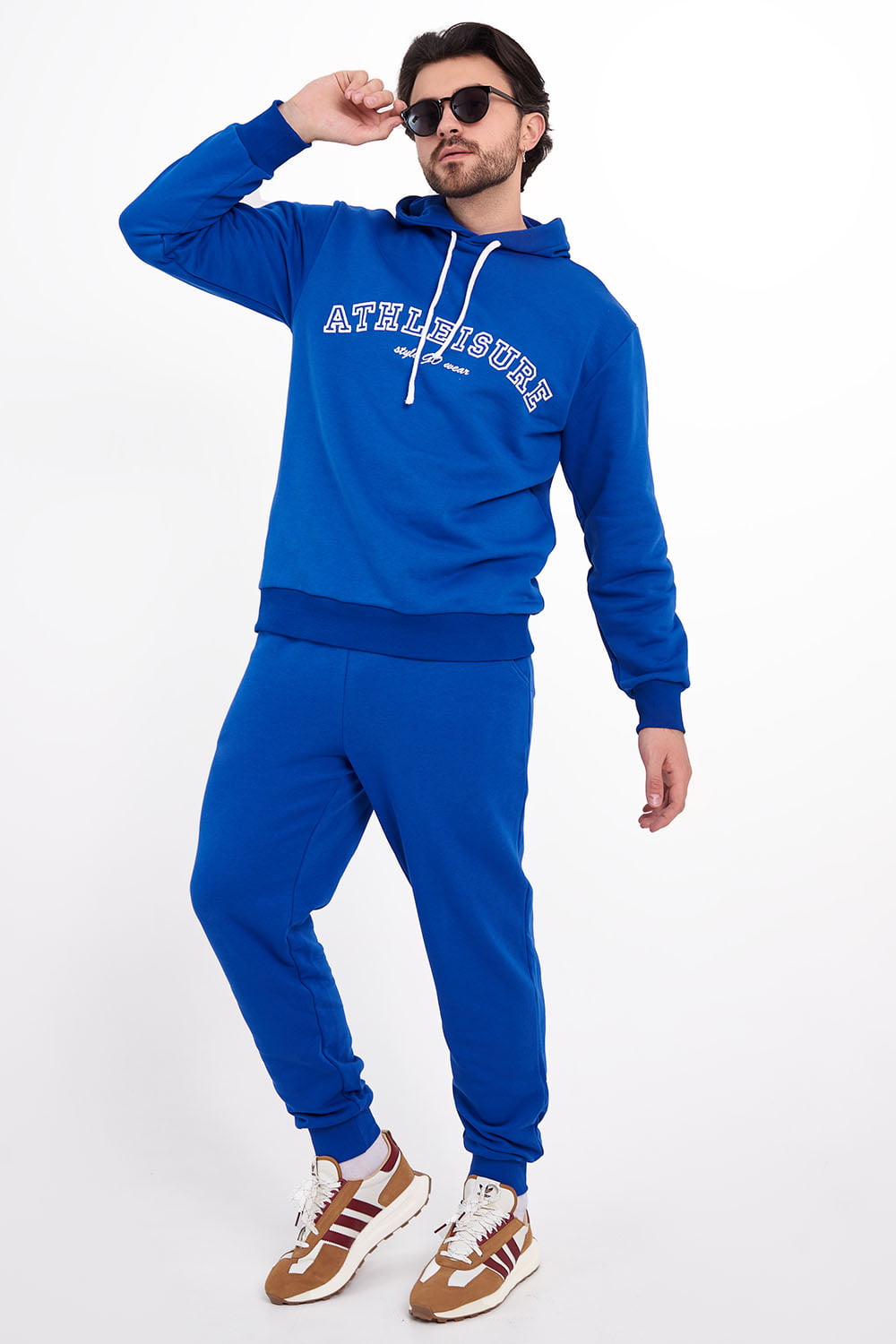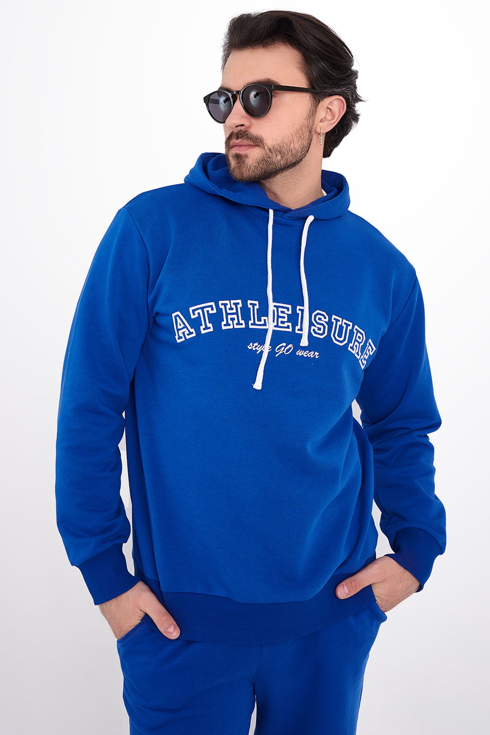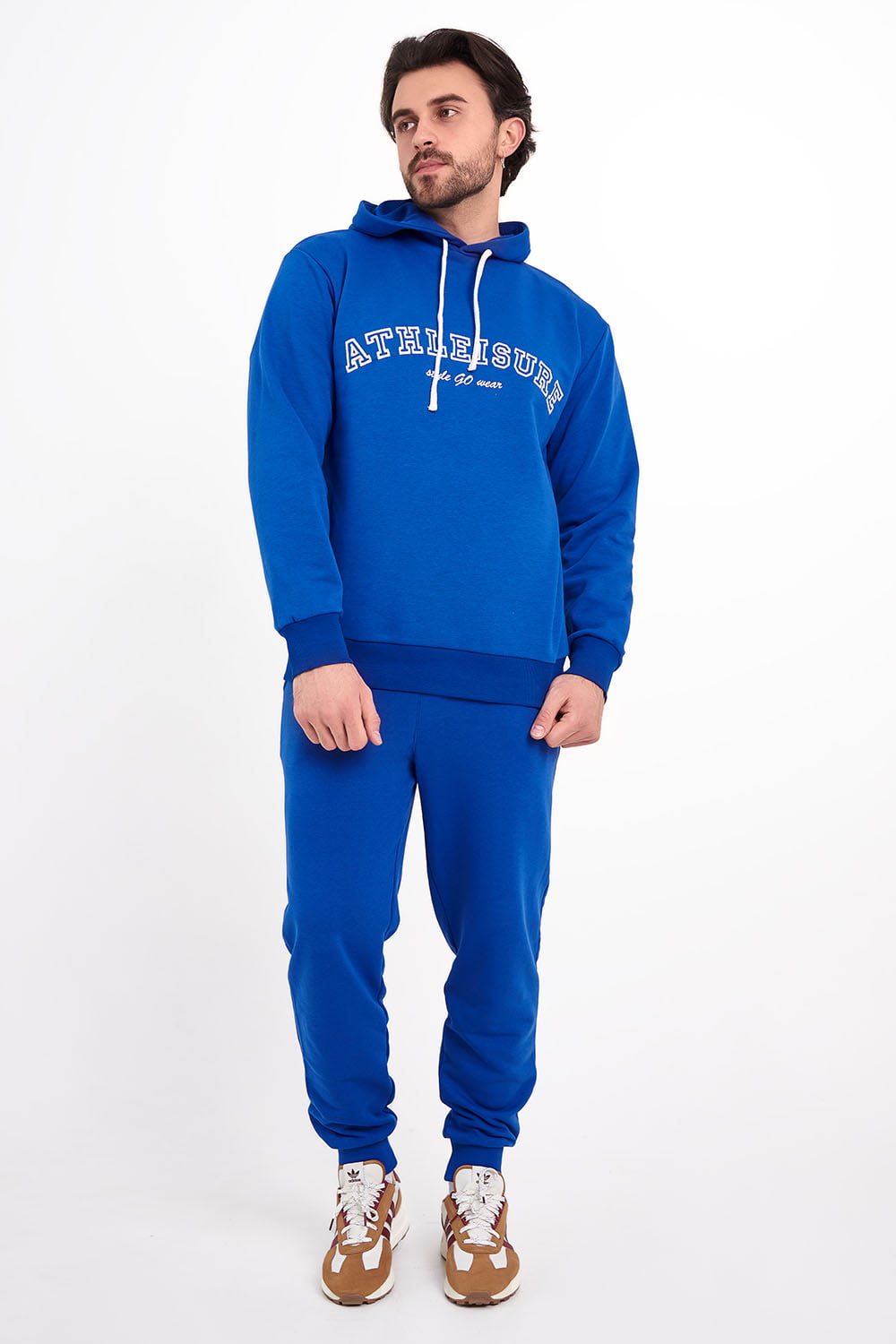 Худи имеет oversize покрой. На переде дизайнерская, контрастная вышивка “athleisure”. Athleisure — это сочетание двух слов athletics и leisure, что означает «спорт» и «досуг». Этот стиль помогает гармонично вписать спортивную одежду в повседневный гардероб. Худи с длинным рукавом, с капюшоном и кулисой со шнуром внутри, в цвет вышивки. Манжеты рукавов и низ выполнены из ткани-компаньена кошкорсе в цвет ткани. Брюки с притачным поясом с резинкой и шнурком внутри. Передняя половинка брюк с боковыми карманами. По низу брюк – притачные манжеты.