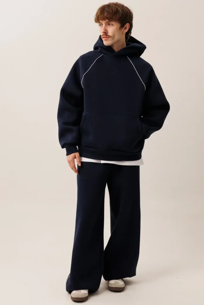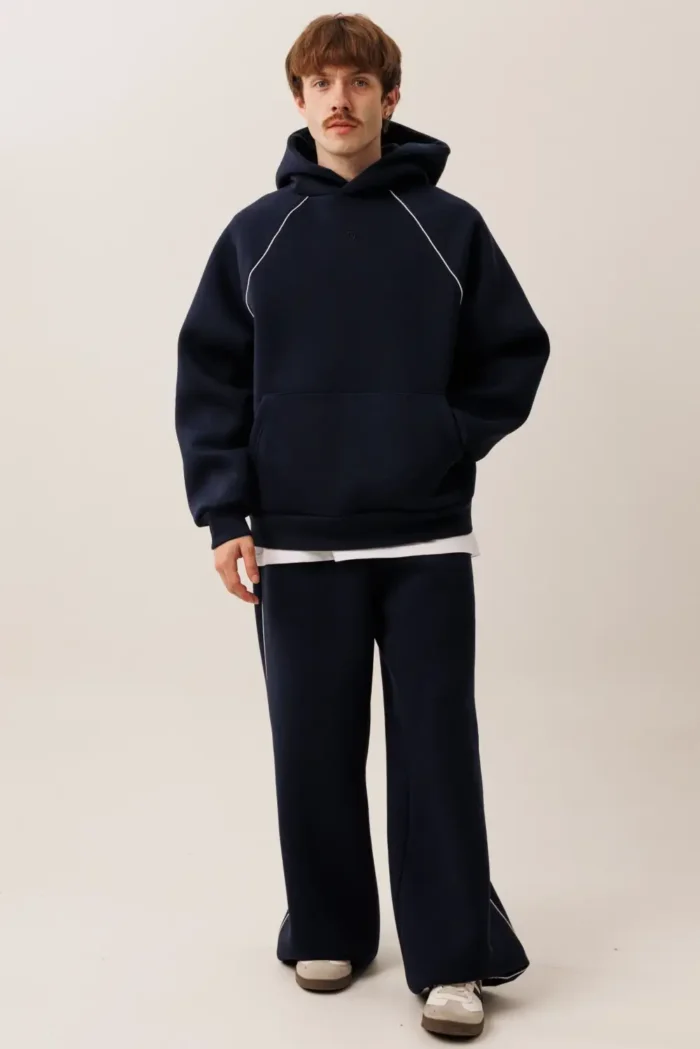 Модный костюм с контрастными кантами (худи оверсайз+брюки)